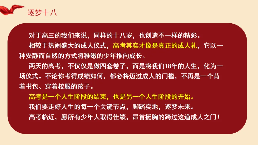 高中生成人礼主题班会PPT:成长承责,逐梦十八/成长承责,驭梦启航十八程,ppt课件共26页(无水印可编辑ppt课件,下载方式见文末)方式一:长按或扫描二维码加好友,截图告知进行 有偿 获取。