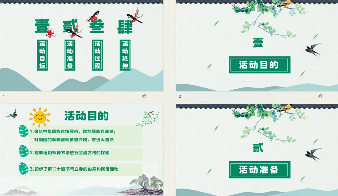 春分,是中华民族传统文化——二十四节气中的第四个节气,二十四节气是幼儿了解我国优秀民族传统文化的好教材。《幼儿园教育指导纲要》中指出:“能探索并发现常见的物理现象产生的条件或影响因素,如影子、沉浮等”。本节课教师将运用“多媒体+实物”的形式,引导幼儿感知观察,探索体验,从春分节气习俗体验入手让幼儿萌发我国优秀传统文化的认同感,增强对于中华民族的归属感。