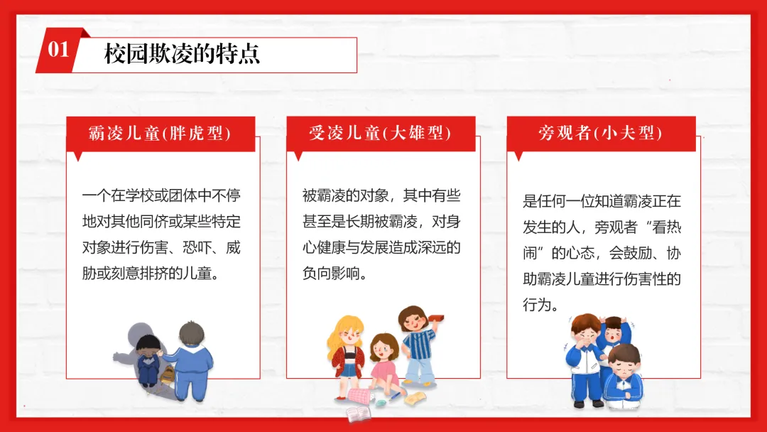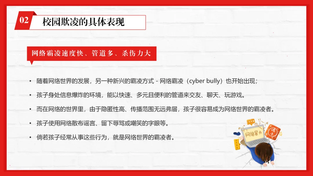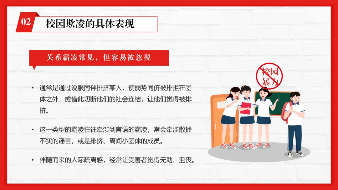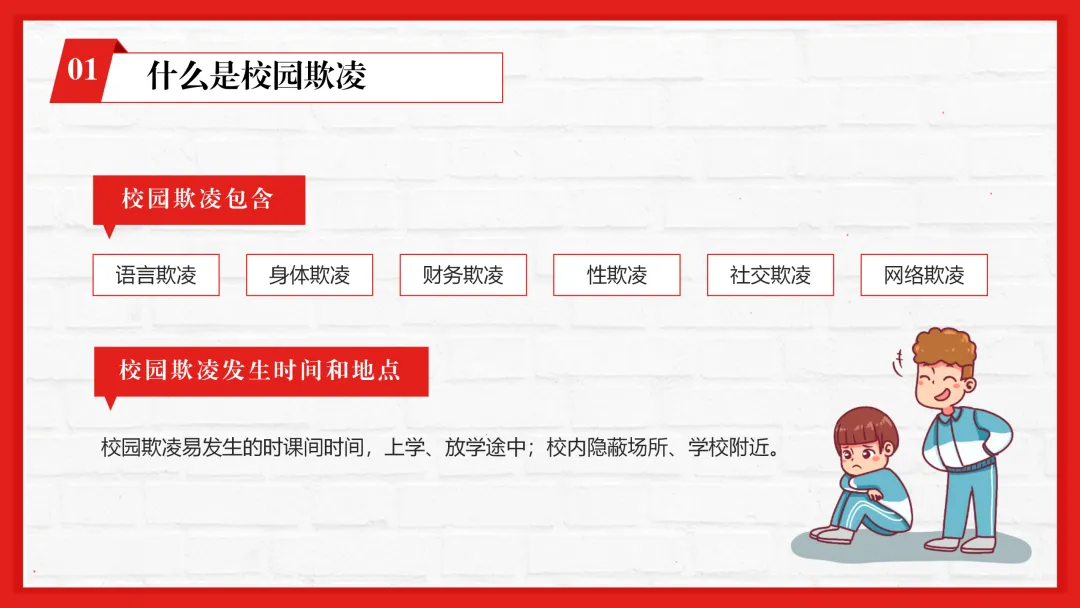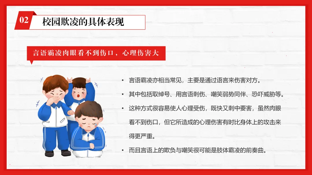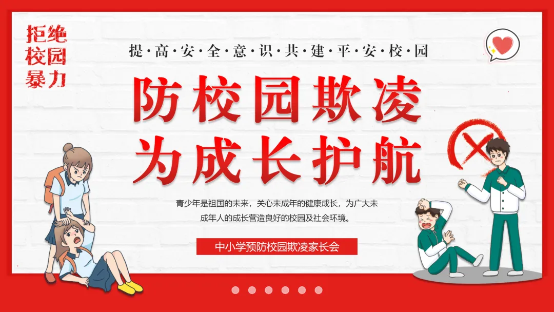 春季学期校园防校园欺凌主题班会ppt来啦,围绕校园欺凌的核心教学要点分四大核心板块设计,逻辑清晰层层递进