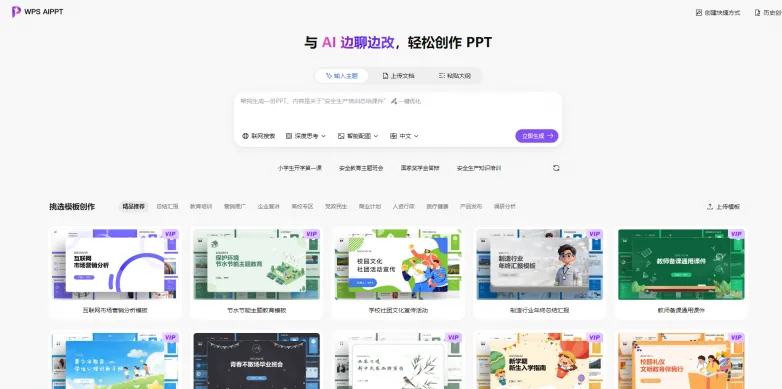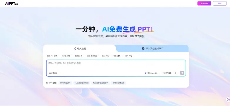 作为较早布局AI PPT赛道的工具,AiPPT 给人的最大印象是稳。它的生成逻辑非常清晰:输入主题 -> 选择大纲 -> 挑选模板 -> 一键生成。