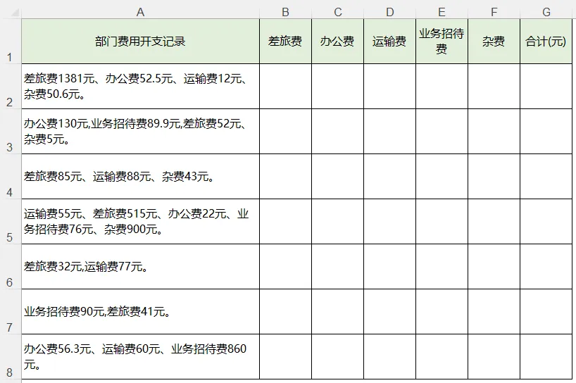 题目:请将A列的费用,分表提取到对应的类别列。