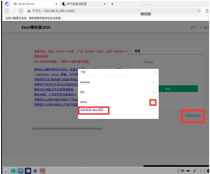 如果目前客户那边允许Windows客户端访问Linux服务器,那么也可以在Windows操作系统里通过es客户端访问服务器或者通过ESWEB访问服务器。下图所示: