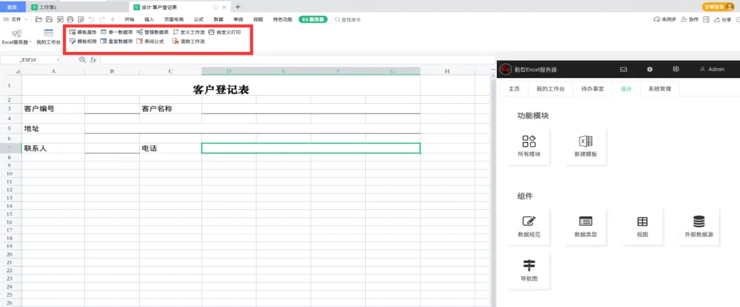 2)通过登录ESWeb,直接在ESWeb里设计模版,填报表单等操作。