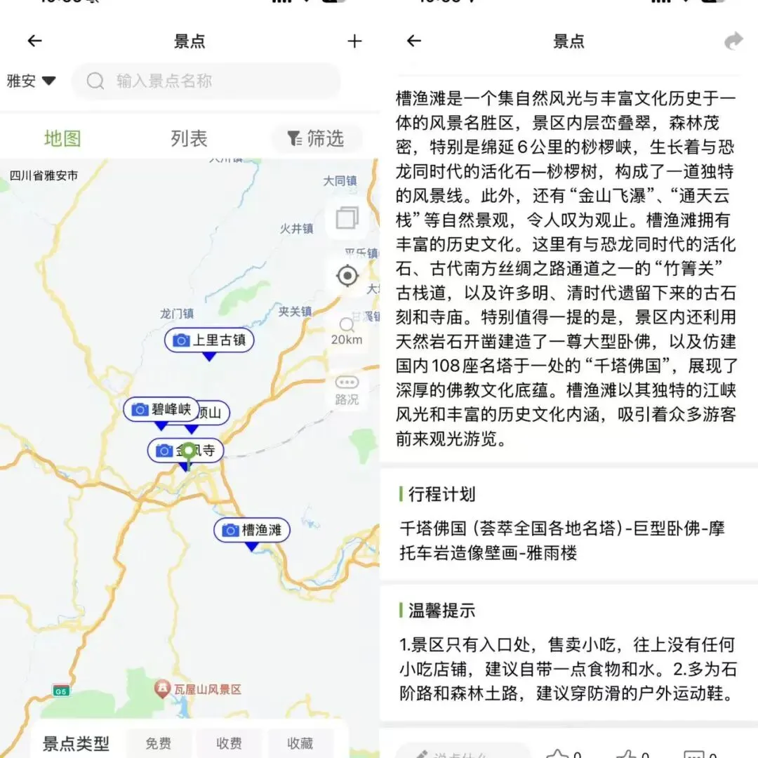 当我开到雅安附近,想找个冷门的小众湖泊时。如果是以前,我要切出导航,打开社交软件搜关键词,再复制地址,再切回导航……这一套流程下来,兴致早就没了。