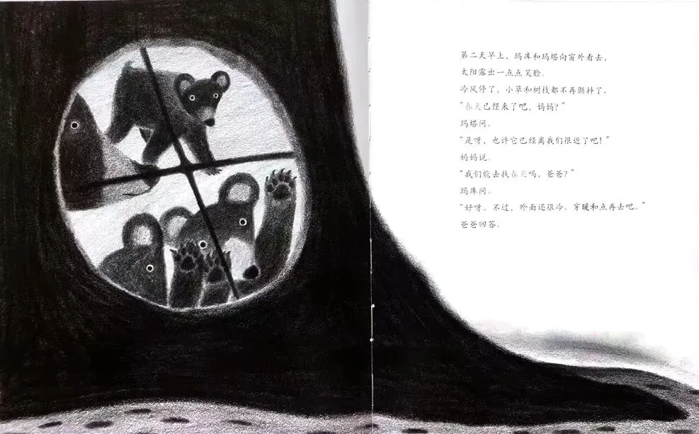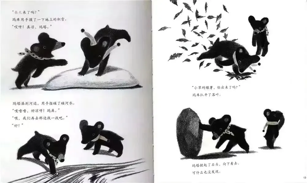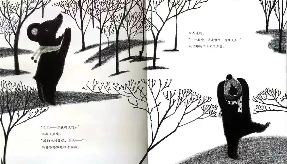 还有,春天一来,森林里冬眠的伙伴们都会出来。玛库和玛塔也一定会交到朋友的!”