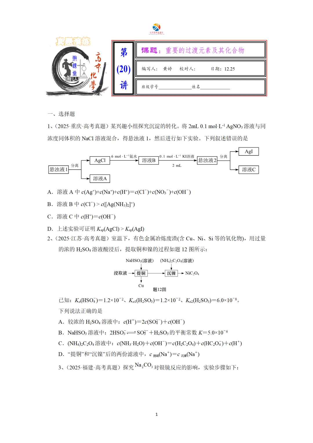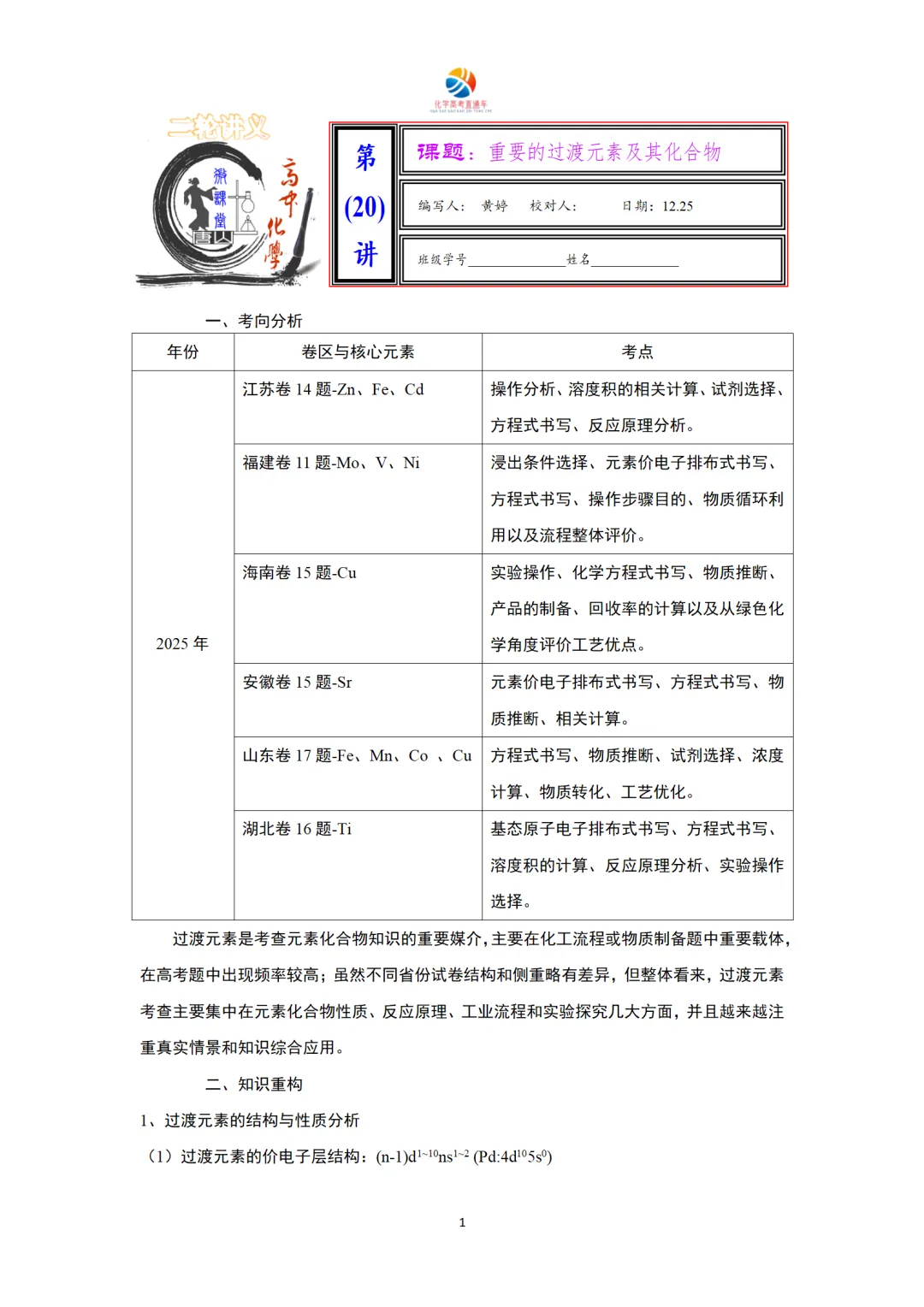 20 | 适度拓展:重要的过渡元素及其化合物 | 黄婷 |