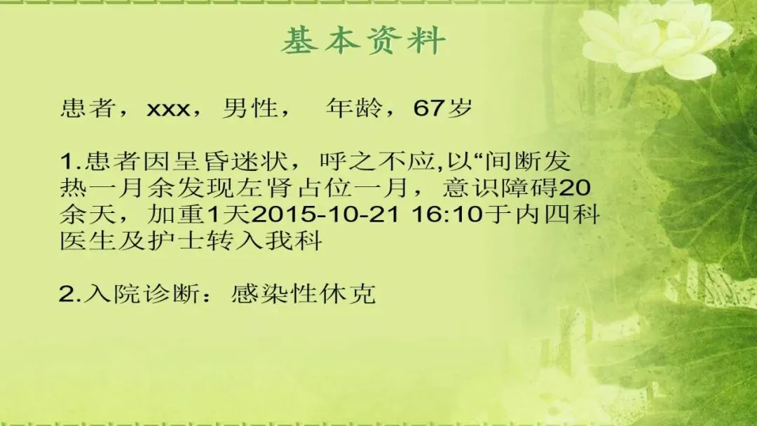 【医护PPT】感染性休克的护理查房PPT