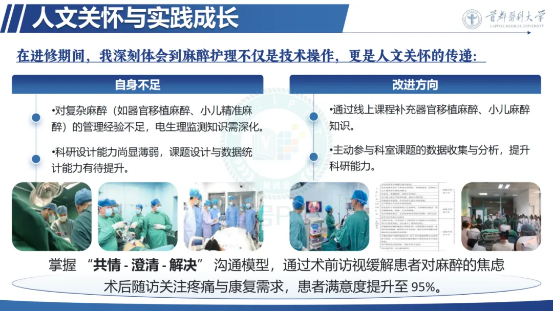 《麻醉科专科护士进修汇报》PPT内容梳理出护理进修汇报类国赛演讲的关键注意事项: