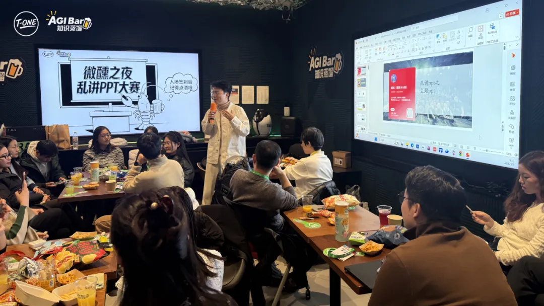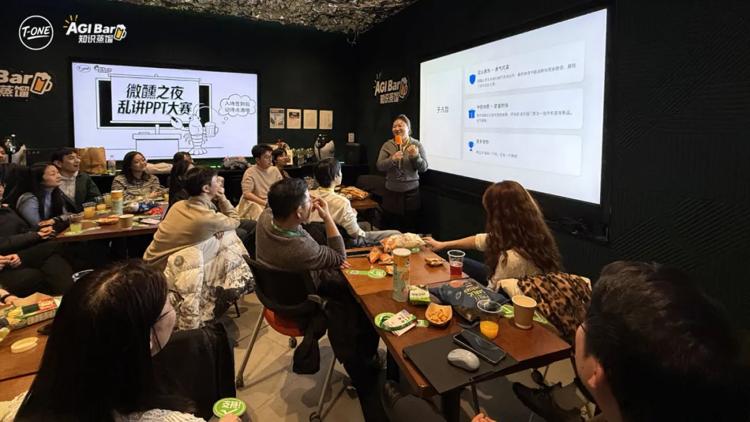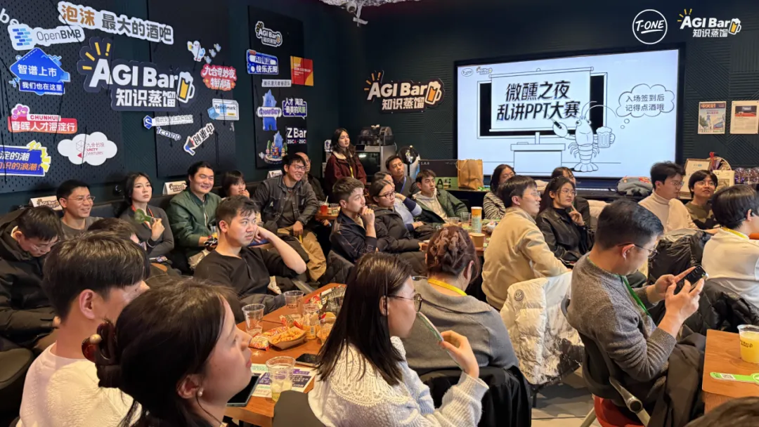 3 月 7 日晚,T-ONE创新中心在 AGI Bar 知识蒸馏举办了第五期「乱讲AI·微醺之夜」。