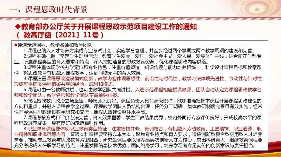 分享分为四个部分:1)课程思政时代背景;2)课程思政具体内涵;3)课程思政实施路径;4)课程思政典型案例。