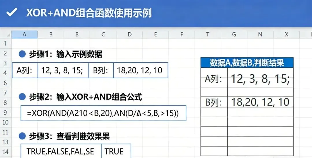 不管是统计员工考勤、筛选合格数据,还是判断项目达标情况,我们经常要处理“多条件逻辑判断”——比如判断员工是否同时满足“考勤达标”和“业绩达标”,是否只满足其中一个条件(互斥),是否两个条件都不满足。很多人都是手动核对两个条件,或者写复杂公式,容易判断失误,尤其是多组数据批量判断时,更是耗时又易错。