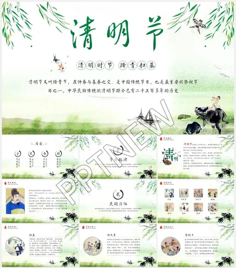 96套清明节PPT模板免费下载,适合清明节活动策划、主题班会、踏青游玩等,部分PPT带内容,可直接做为课件使用。接下来,我们就来看看这份清明节PPT模板都包含什么,希望在以后的工作中对你有所帮助呦~以上就是本期《清明节PPT课件》部分内容介绍,由于图文限制,这里只分享了部分预览图,详细内容大家下载后自己慢慢欣赏吧。