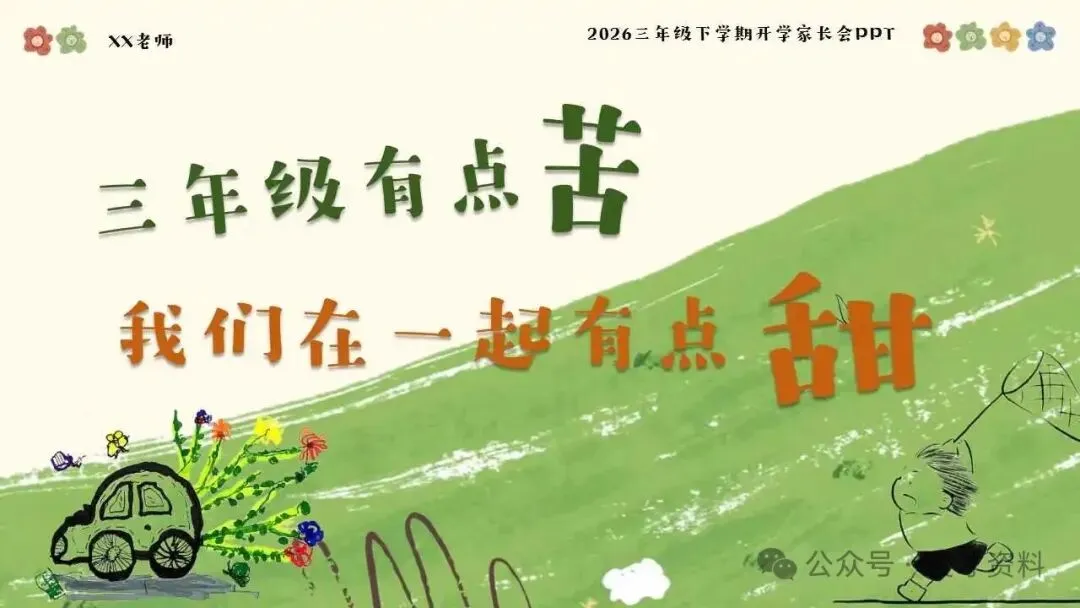 三年级春季下语文开学家长会ppt课件:三年级有点苦,但我们在一起有点甜。