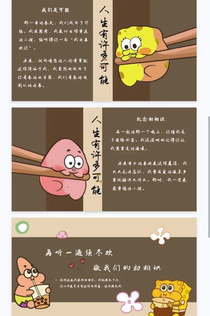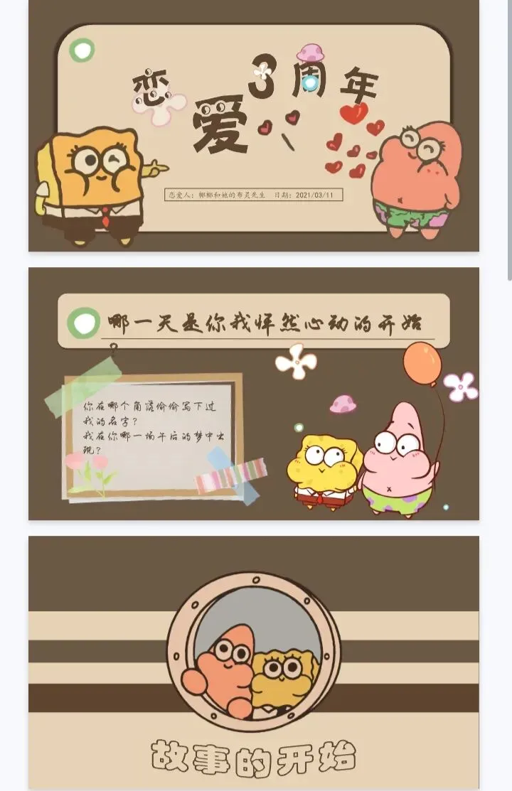 谁能拒绝这对比奇堡顶流的甜妹恋爱模板呀🥰当海绵宝宝和派大星穿上情侣装,当“故事的开始”变成你们的恋爱3周年纪念,这组PPT直接把氛围感拉满!