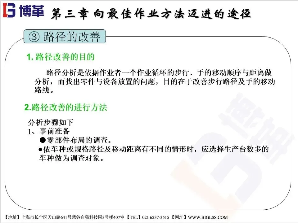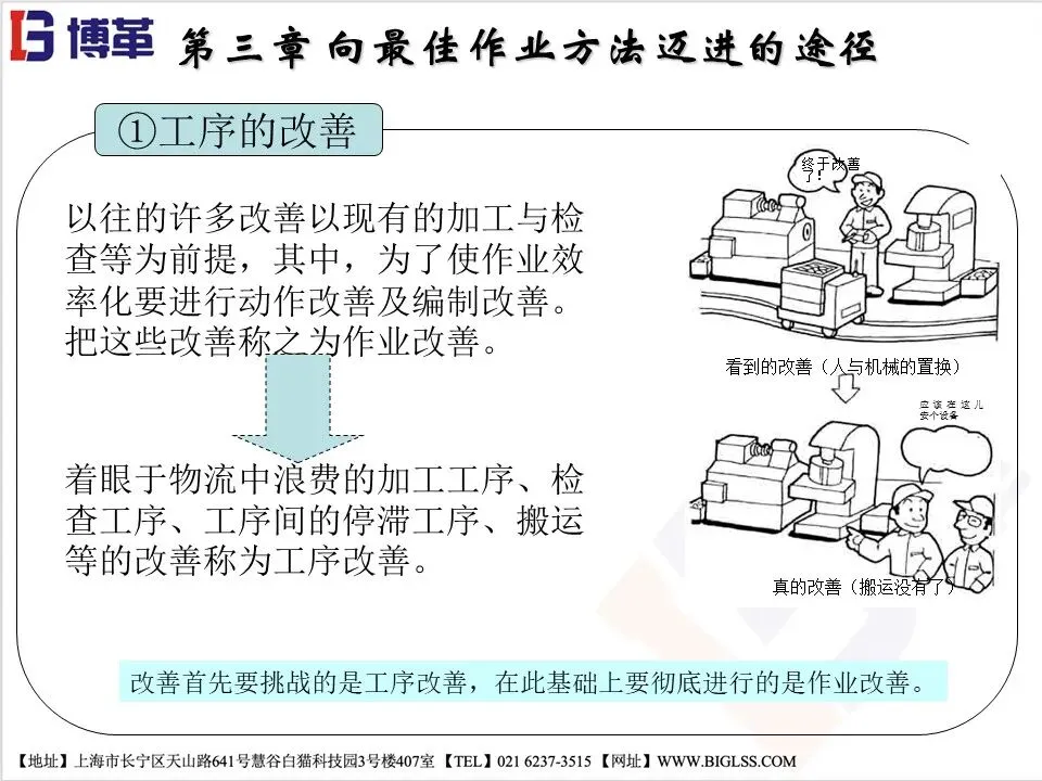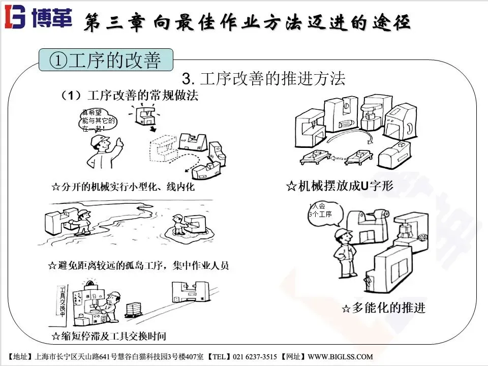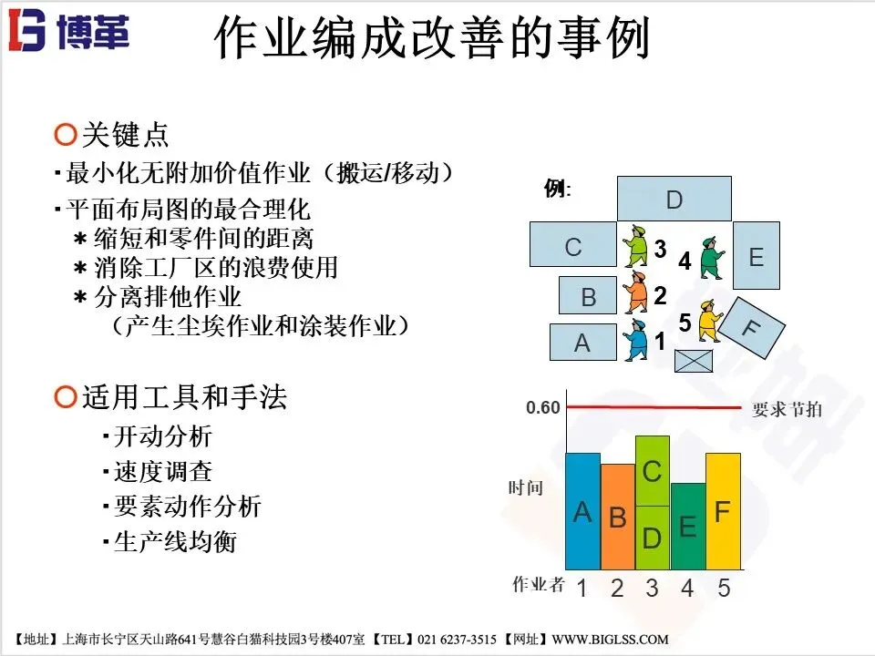 上海博革咨询已为全国上百家企业提供落地成效的精益管理咨询服务,为近千家企业提供培训和现场改善指导服务,客户已遍及全国,行业涉及汽车、机械、电子、医药、食品、化工、冶金、服装等。TEL:021-62373515 / 15721533189