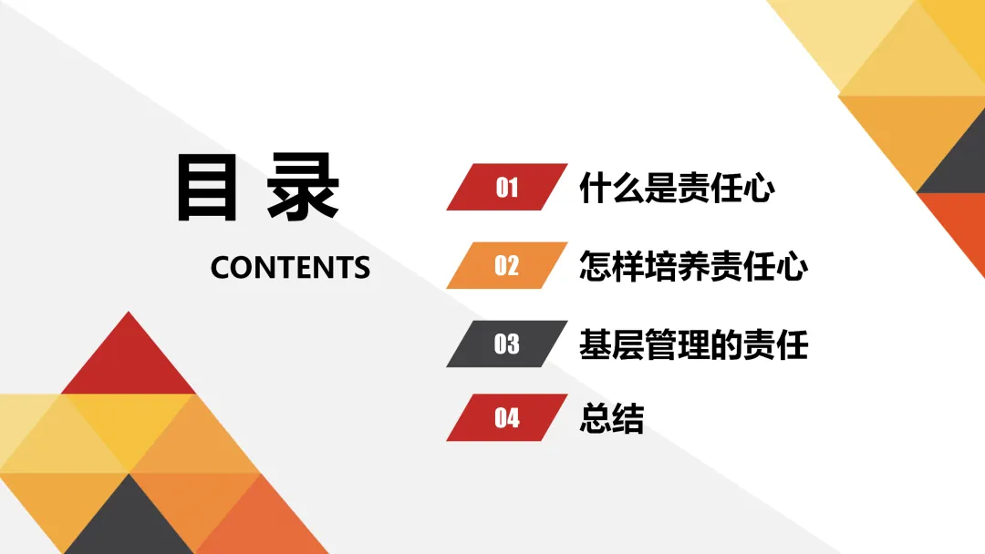 各位同事,责任心是我们每个人成长和成功的基石。只有当我们能够正视自己的责任并勇于承担时,才能真正实现个人价值和企业价值的双赢。因此,我希望大家能够从今天开始,更加注重培养自己的责任心,不断提升自己的职业素养和综合能力。