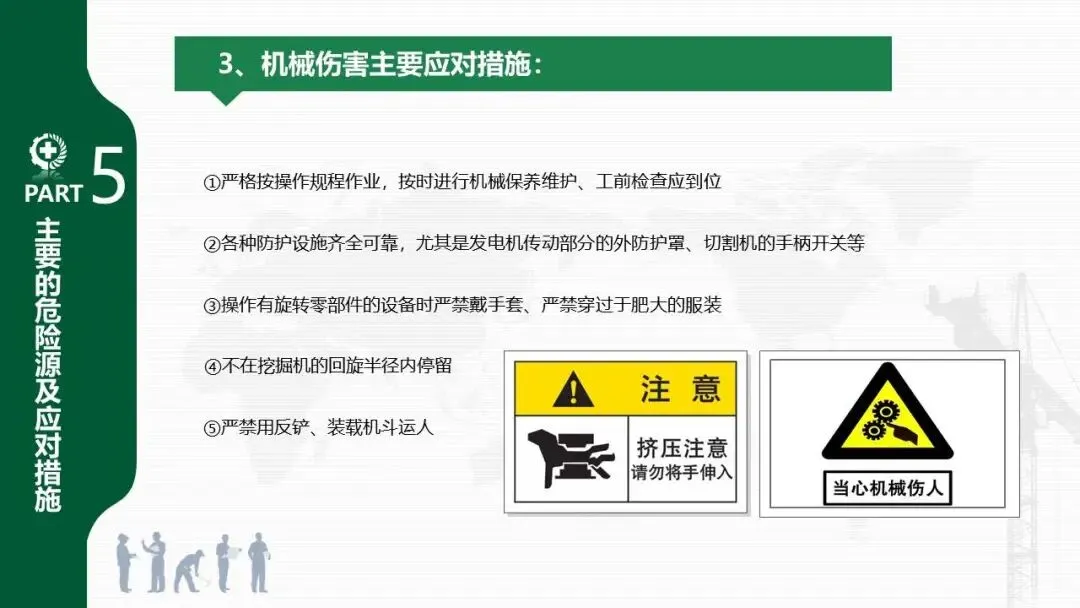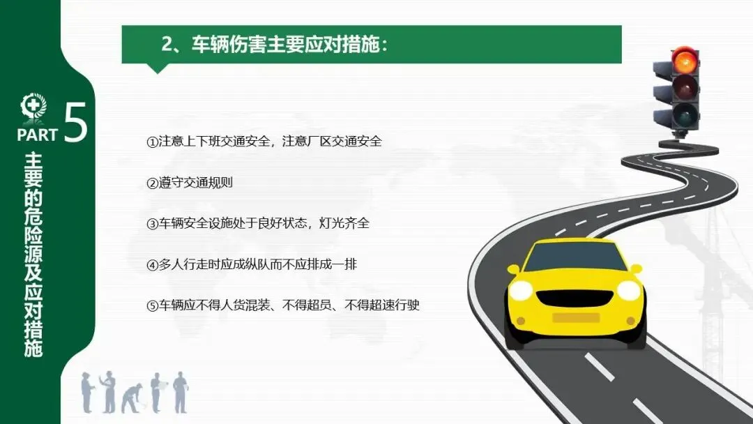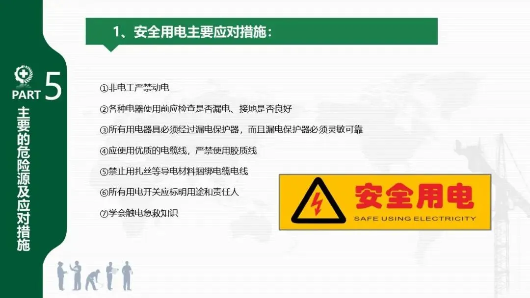 - 针对安全用电、车辆伤害、机械伤害、起重伤害、物体打击、高处坠落、火灾等常见风险,分别提出了具体的预防和应对措施。