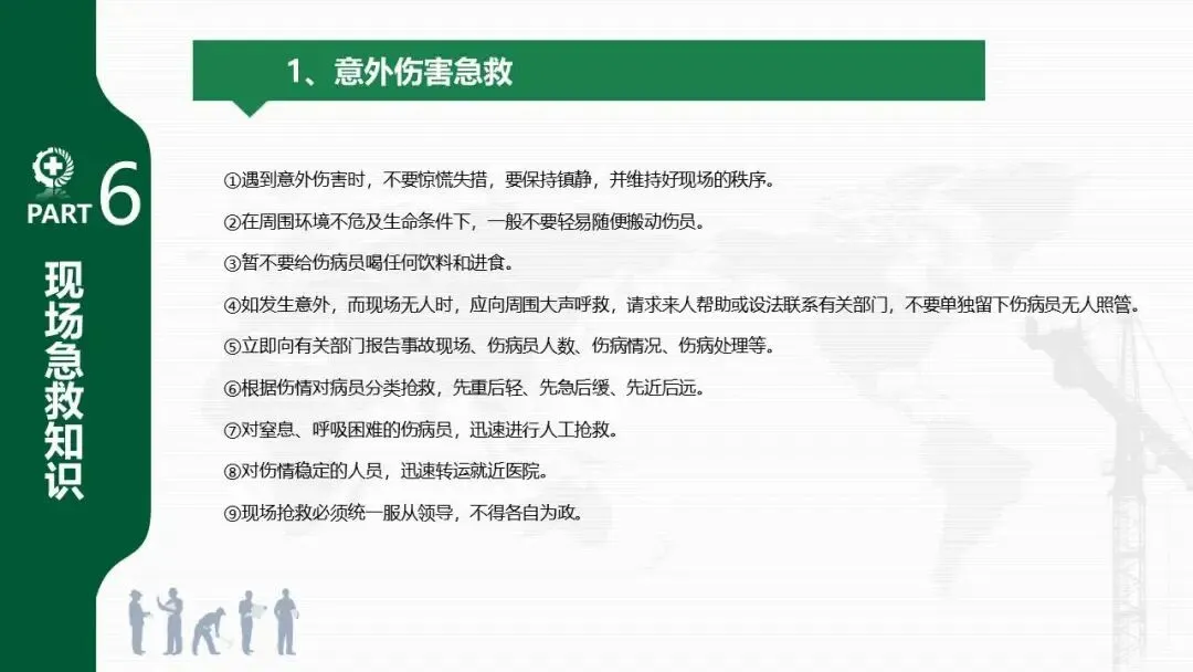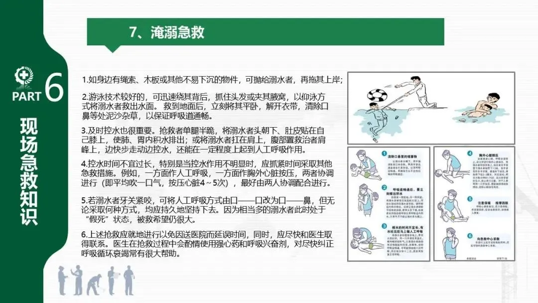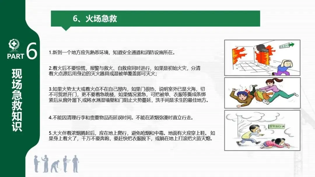- 提供了意外伤害、触电、中暑、砸伤、高处坠落、火场、淹溺等七类紧急情况的现场急救方法。