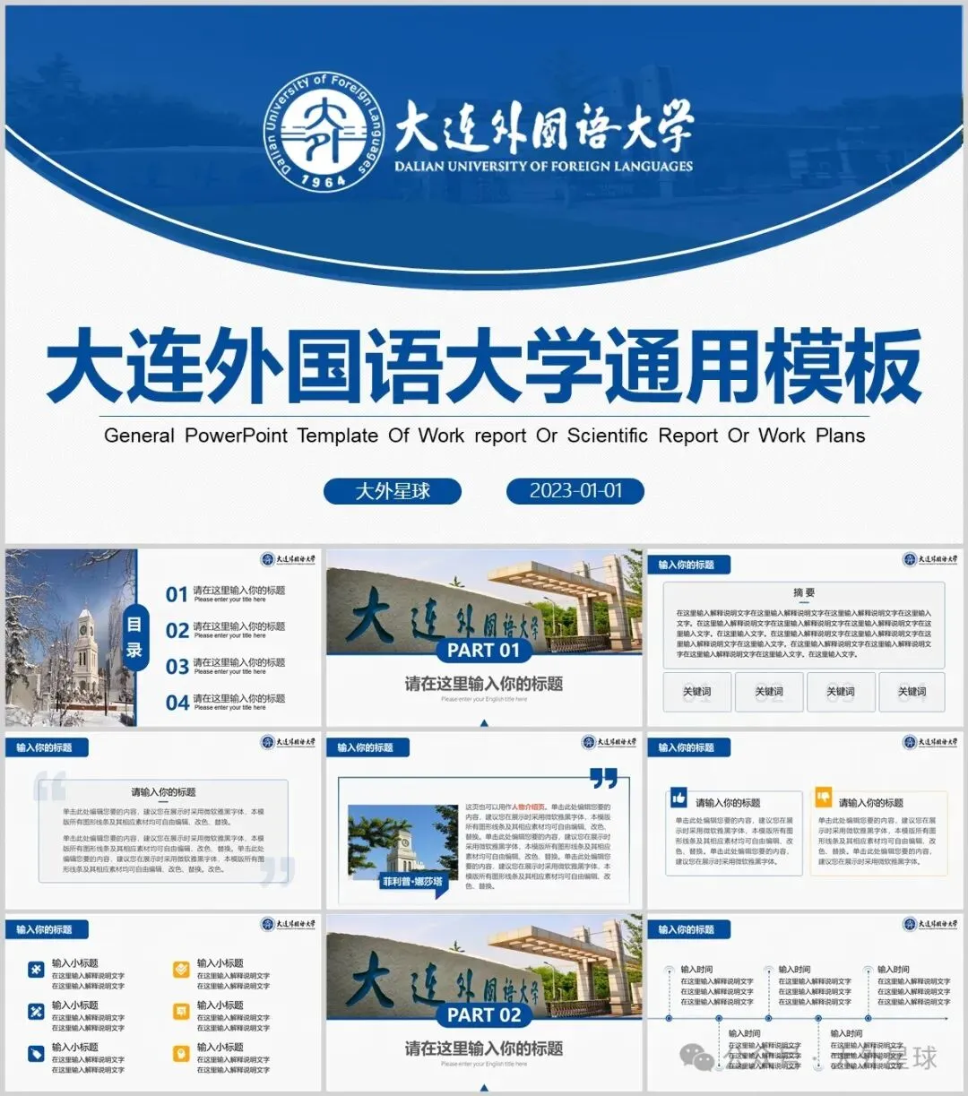 >大连外国语大学PPT模板来啦!