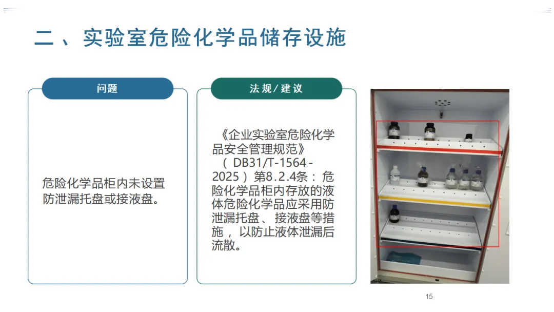 用于储存强酸(如浓硫酸、浓硝酸、浓盐酸)、强碱(如氢氧化钠、氢氧化钾浓溶液)等。必须采用耐腐蚀材料,并配备防泄漏托盘。