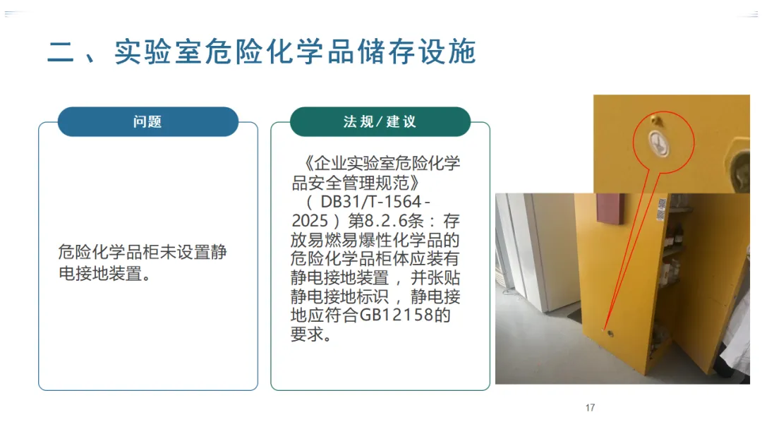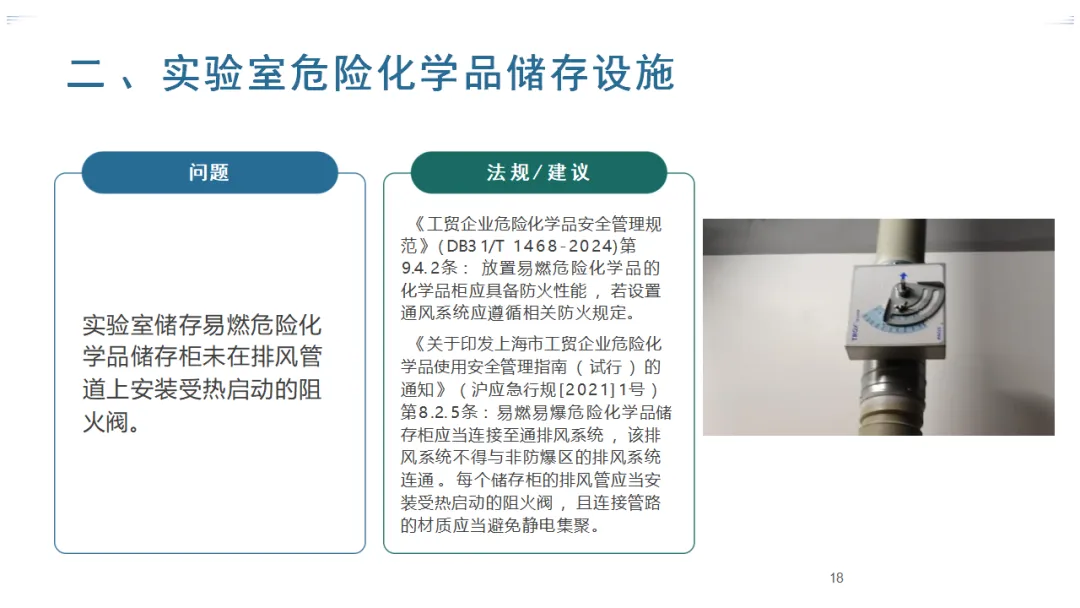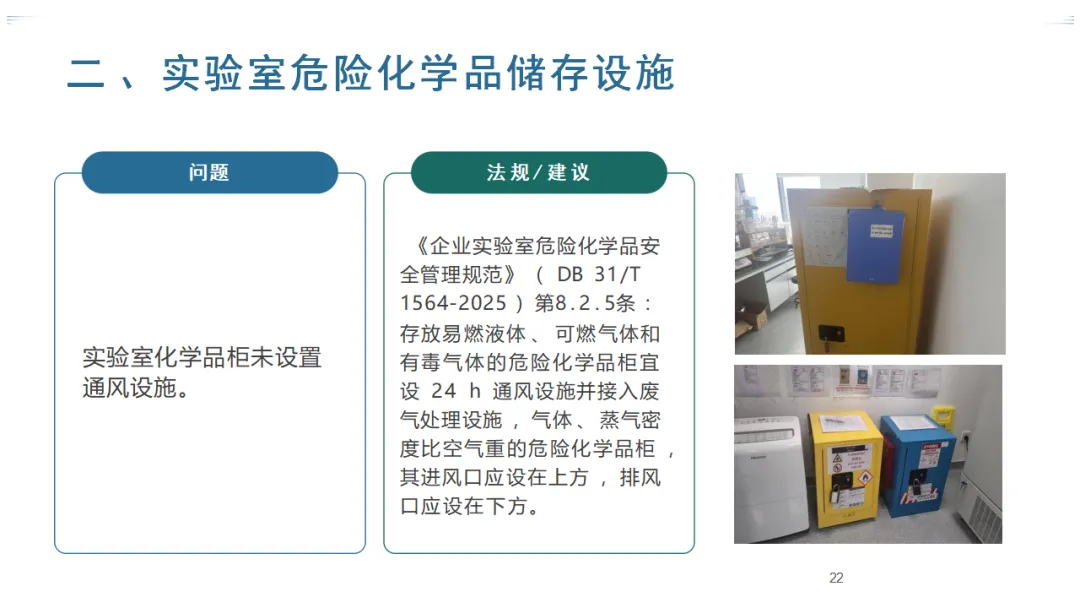 隐患1:易燃危险化学品储存柜未设置通风或阻火阀