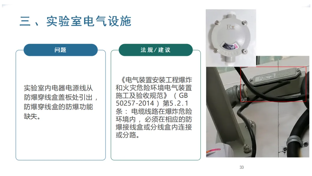 这是一个非常严重的隐患。易燃化学品挥发出的蒸气在柜内积聚,一旦浓度达到爆炸极限,遇到火花就会爆炸。如果通风系统与非防爆区连通,还会把爆炸危险传播出去。