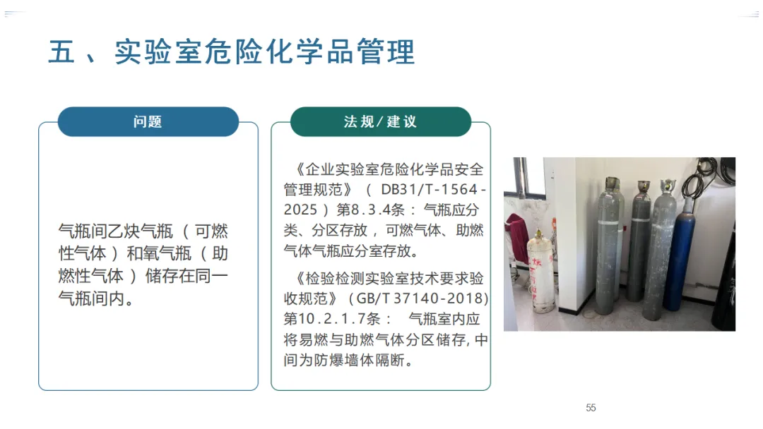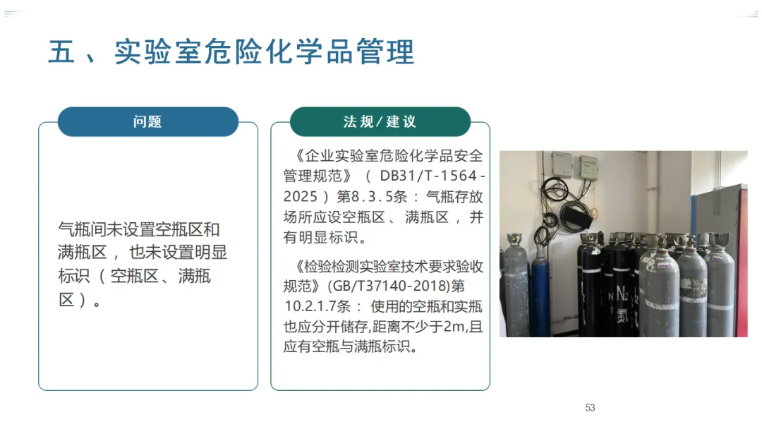 气瓶无防倾倒措施、无瓶帽、无防震圈,或者满瓶空瓶混放,这些都很危险。