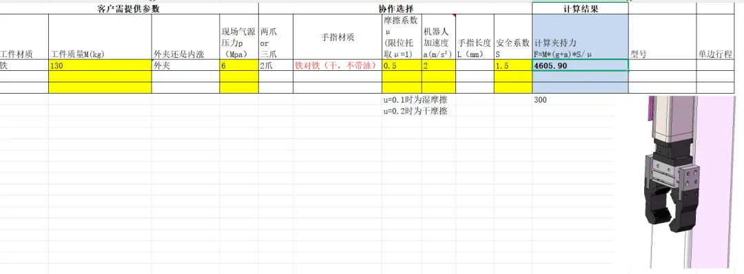 自动筛选匹配:输入行程(如 20mm)、夹持力(如 500N),一键筛选出符合要求的气爪型号;