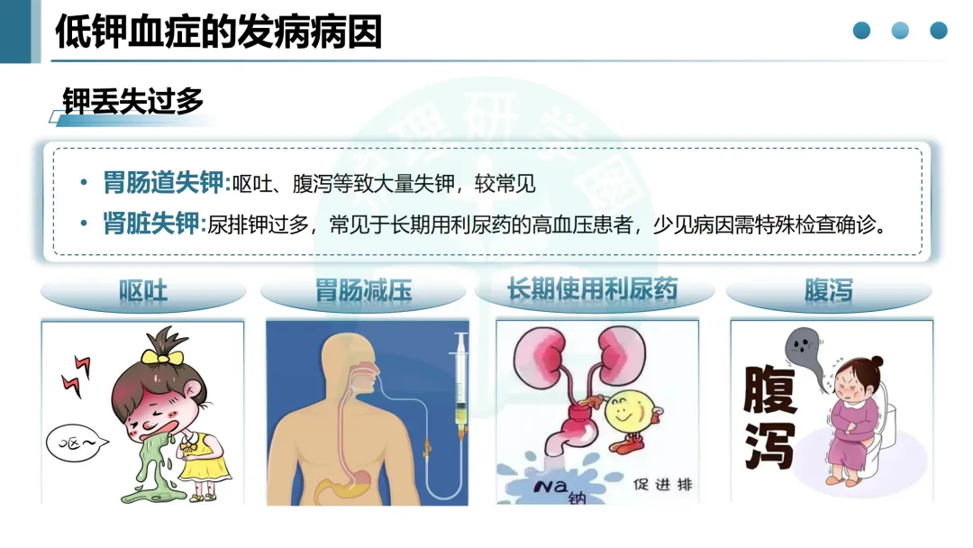 钾丢失过多:胃肠道失钾呕吐🤮、腹泻等(最常见原因之一)。