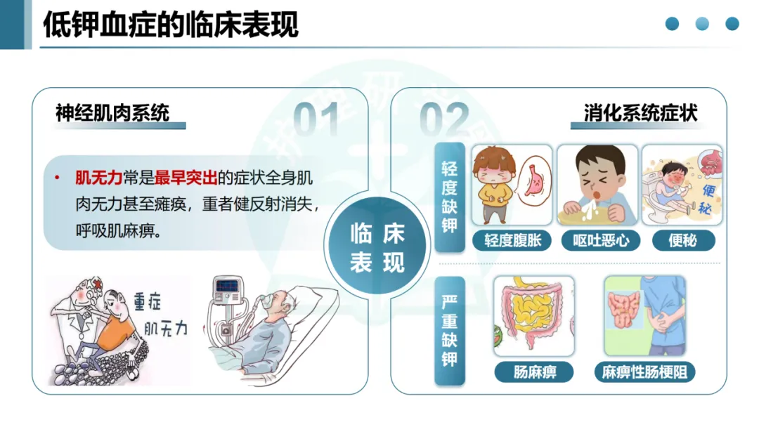 消化系统:轻度缺钾腹胀、恶心、呕吐、便秘💩。严重缺钾肠麻痹、麻痹性肠梗阻。
