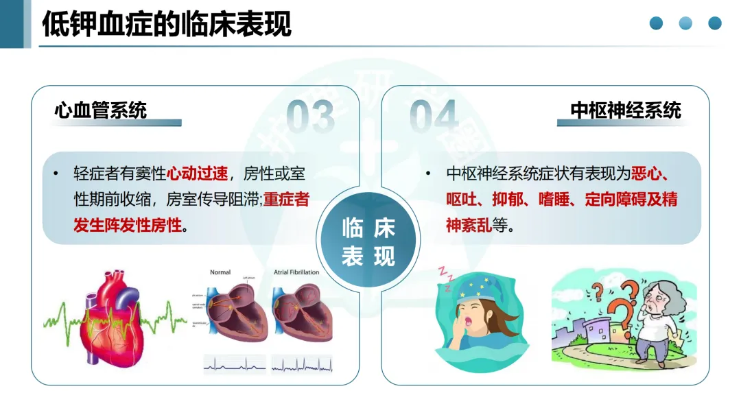 心血管系统:轻症窦性心动过速❤、房性/室性期前收缩、房室传导阻滞。重症阵发性房性心动过速、室颤、心脏骤停。