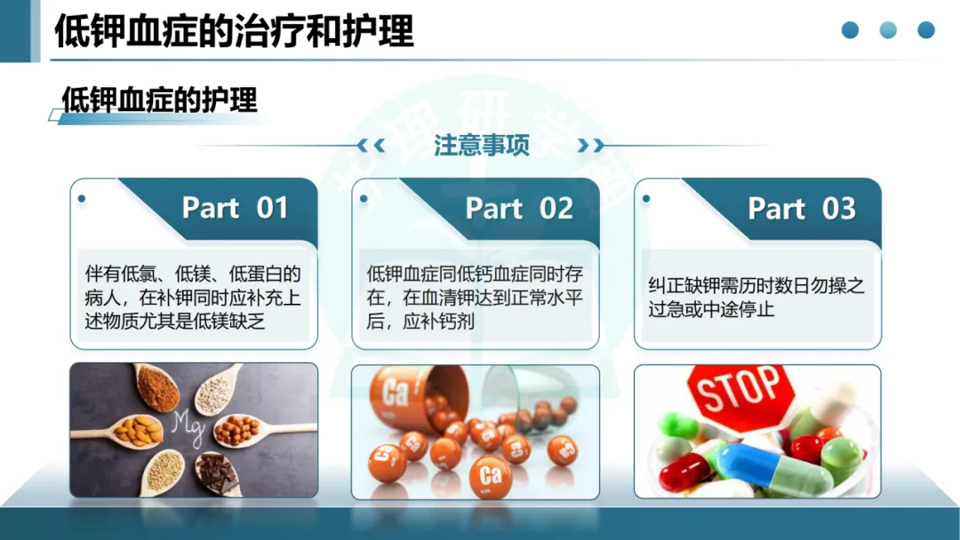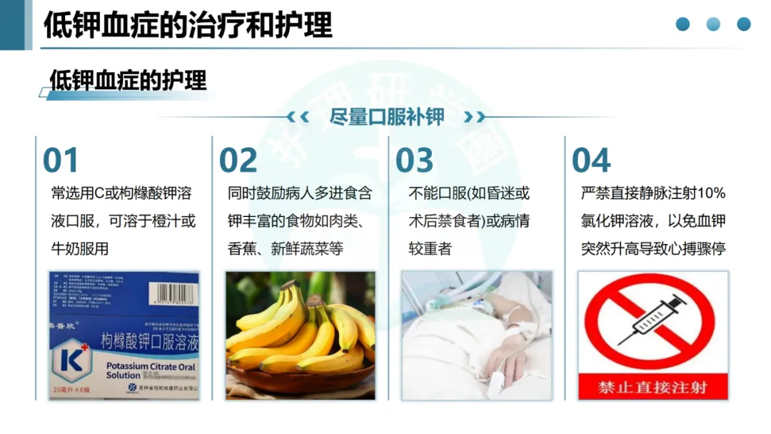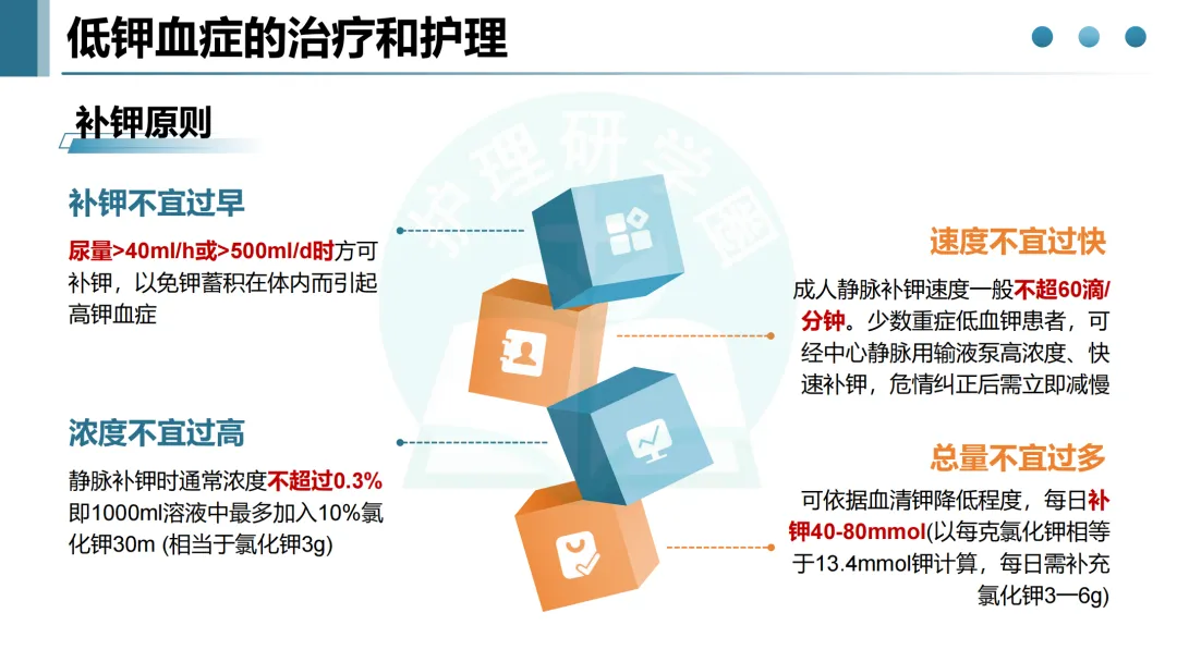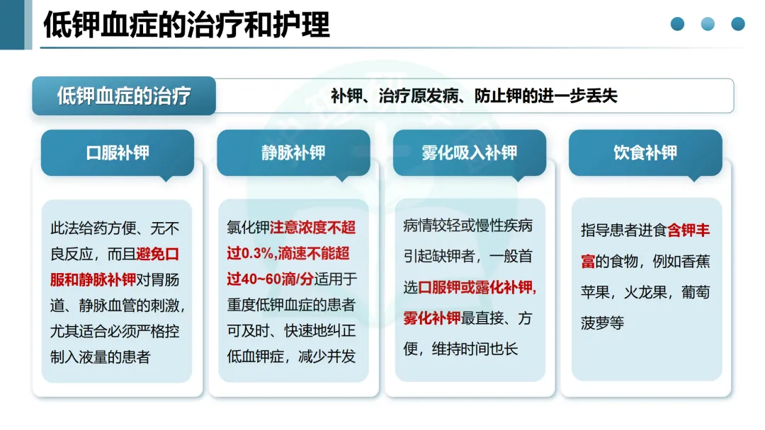 治疗原则:补钾、治疗原发病、防止钾进一步丢失。