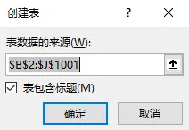 点击【插入】选项卡中的【表格】按钮,或者直接按下【Ctrl+T】的组合键,在弹出的对话框中点击【确定】,就能完成超级表格的创建。