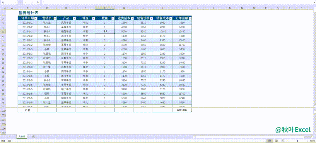 既然我们用超级表格固定了表头,又完成了大表格的汇总统计,当我们滚动滚轮的时候,有没有办法同时观察标题行和汇总行呢?