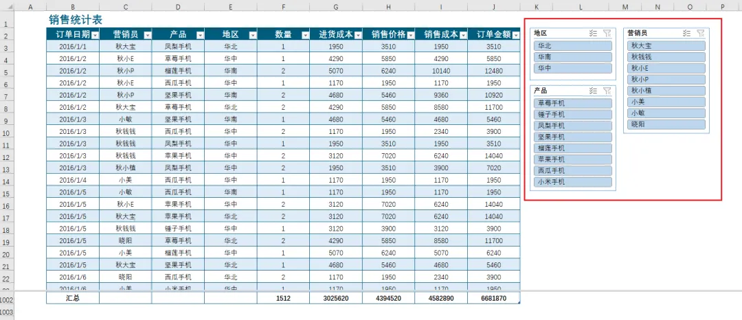 因此,我们要使用最后一个杀手锏:【切片器】,来完成对大表格数据的急速查询。