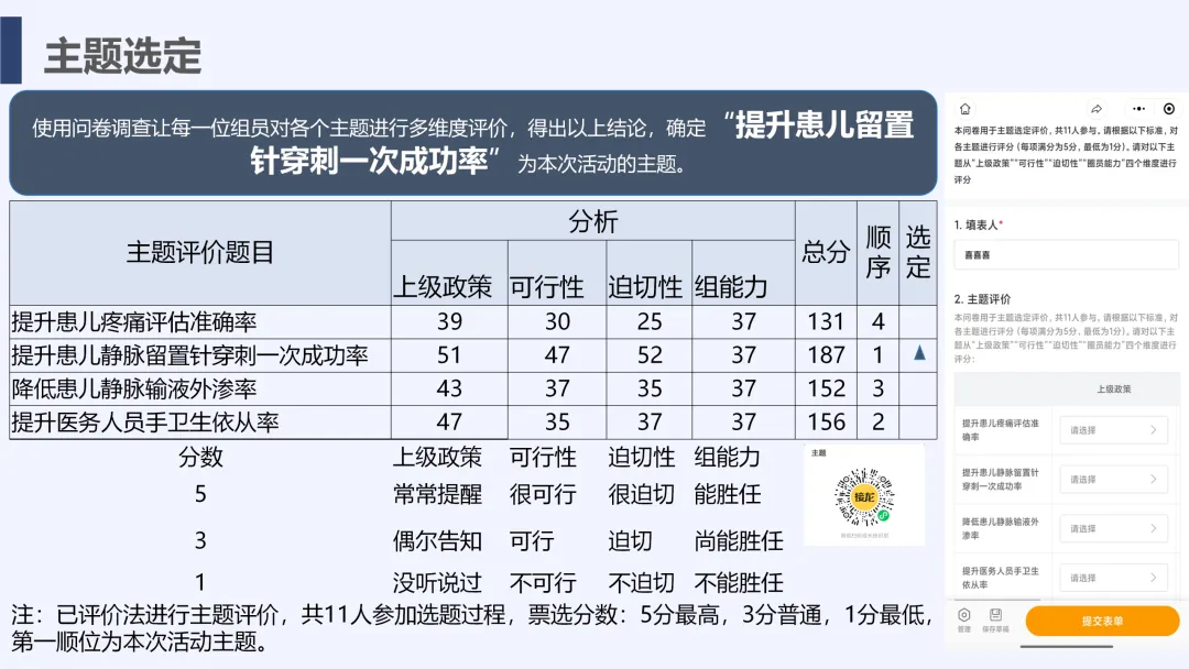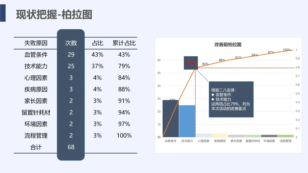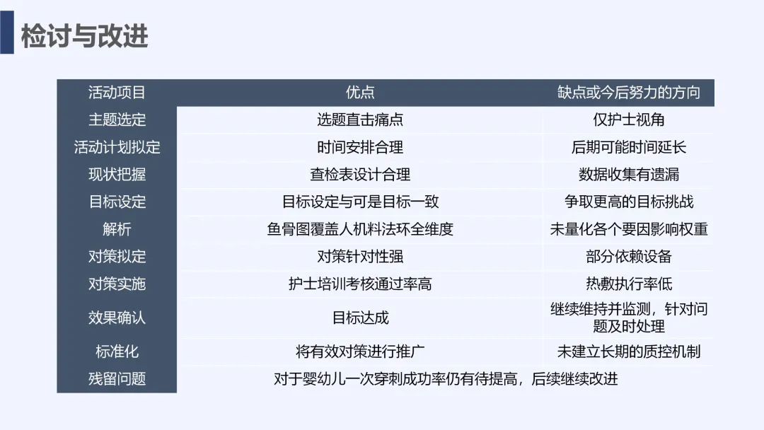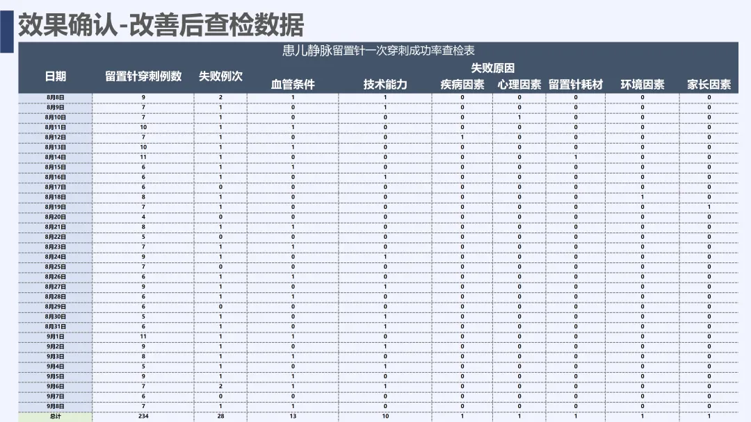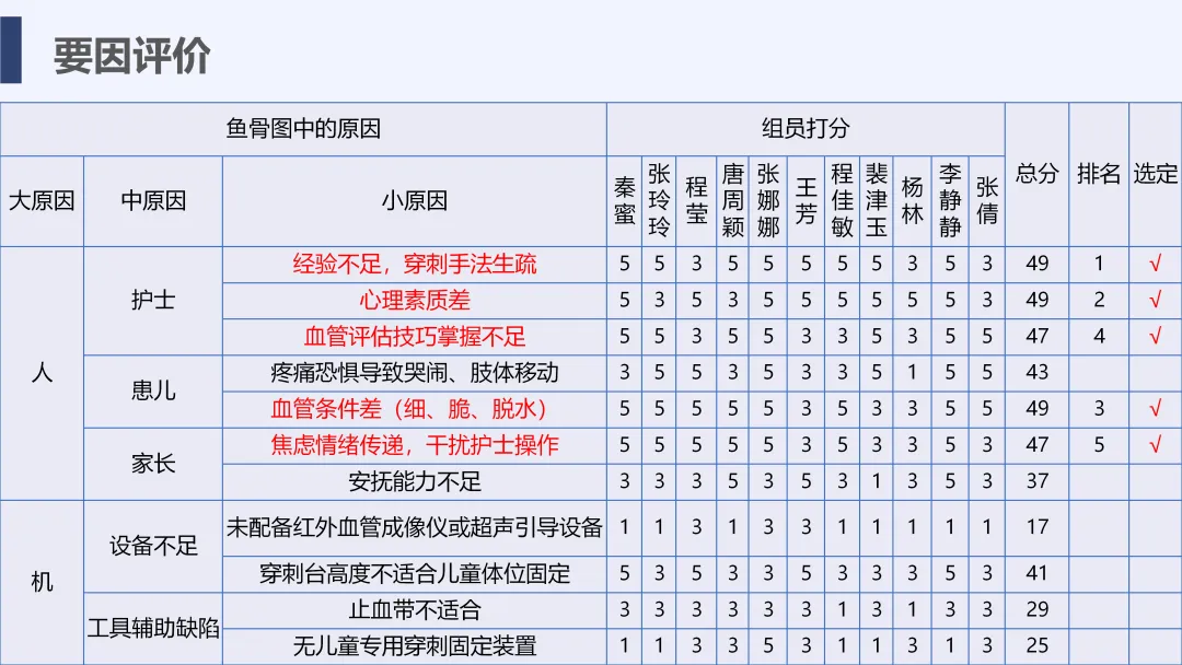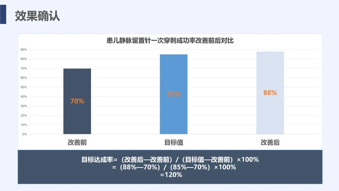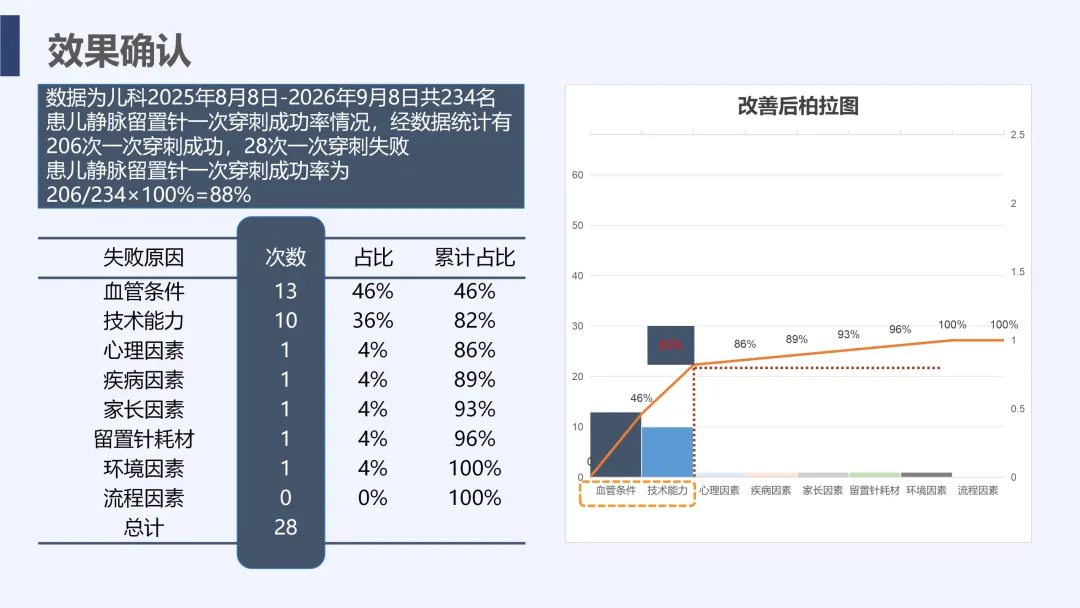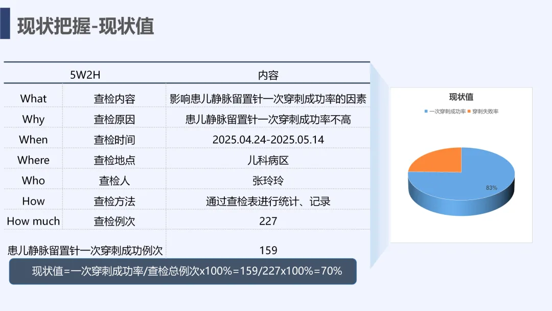 静脉输液是儿科临床常用治疗手段,静脉留置针因能减少反复穿刺痛苦被广泛应用,但临床中穿刺一次成功率偏低的问题较为突出,不仅增加患儿痛苦、易引发家属不满,也影响护理工作效率与质量。为改善这一现状,我院儿科团队运用PDCA循环管理方法开展专项质量改进工作,通过选题评价、现状查检明确核心问题,经原因分析与真因验证制定针对性对策并落地实施,最终有效提升了患儿静脉留置针一次穿刺成功率,形成标准化操作流程,为儿科静脉护理实操提供了切实可行的优化方案,同时也提升了护理团队专业能力与服务质量。