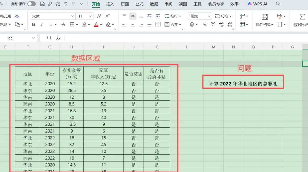 如图,计算2022年华北地区的总彩礼