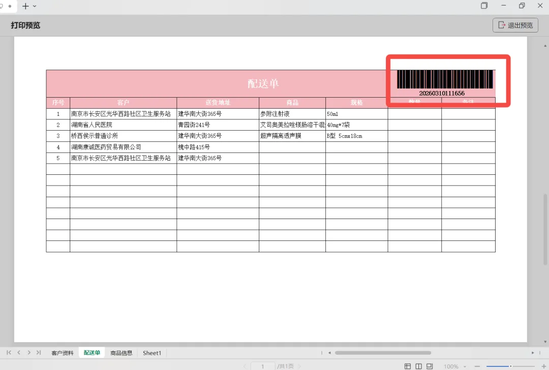 在昨天excel配送单实战的第4集二级下拉框联动截图里,眼尖的宝子发现了一个有趣的地方,自动单号带条形码显示。如下图: