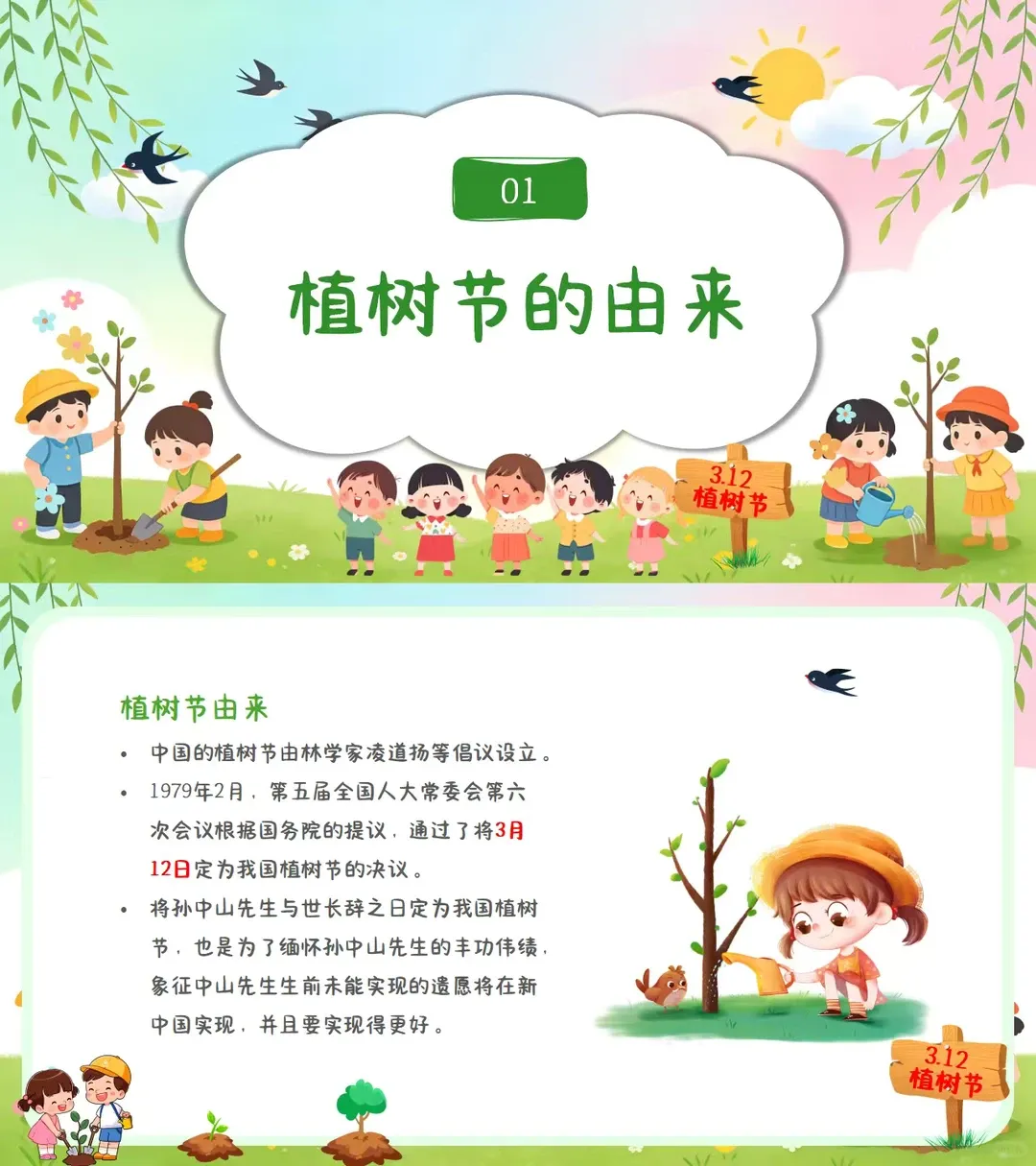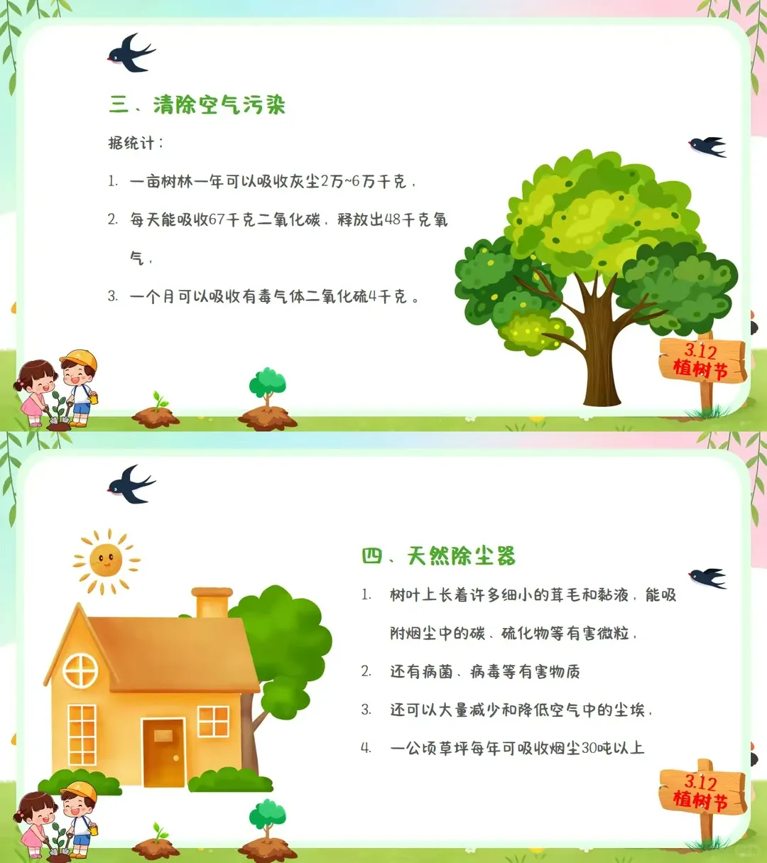 3.12植树节PPT29页,有教案 ……………………… 宝子们植树节来啦~整理了超全的植树节小知识,简单好记👇