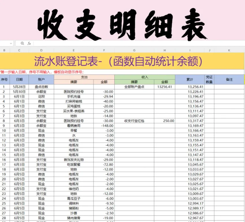 78款日常收入支出明细表格Excel模版(电子版可编辑可打印)【免费保存下载】