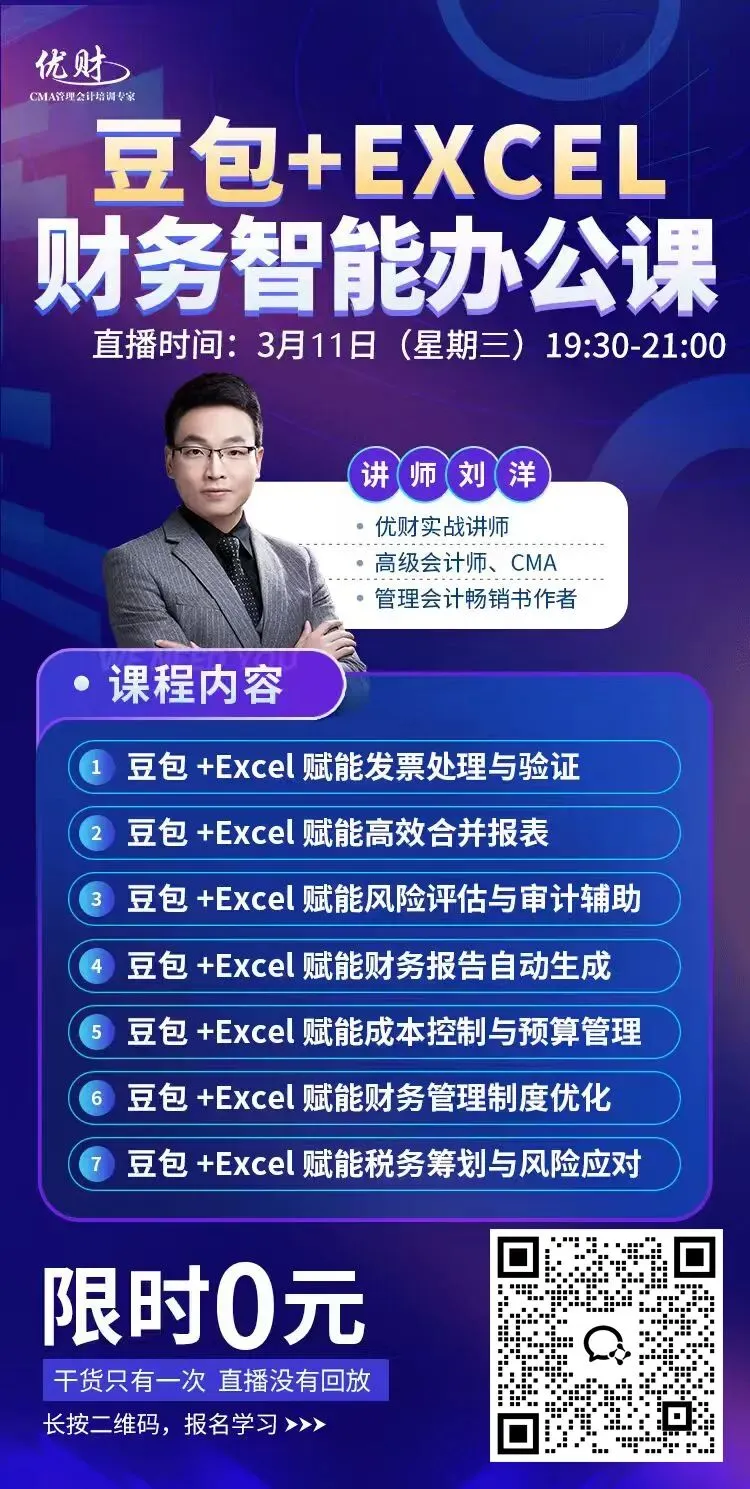 别急,今晚19点半,我们特别邀请实战大咖刘洋老师,带来一场硬核直播—🔥《豆包在财务领域中6大高效应用》,让你工作效率提高20倍以上!