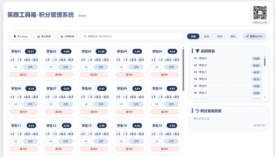 📌 新接手一个班级,要重新录入40多个学生的名字,手敲到抽筋?📌 期末统计积分,发现Excel表格和手头记录对不上,翻箱倒柜找原始记录?📌 想用在线软件又担心学生隐私泄露,每次联网都提心吊胆?