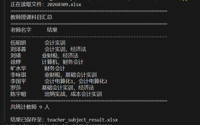 代码已整理为完整可运行脚本 analyze_teacher_subjects.py,直接放到 Excel 同级目录执行即可。有问题欢迎留言交流!