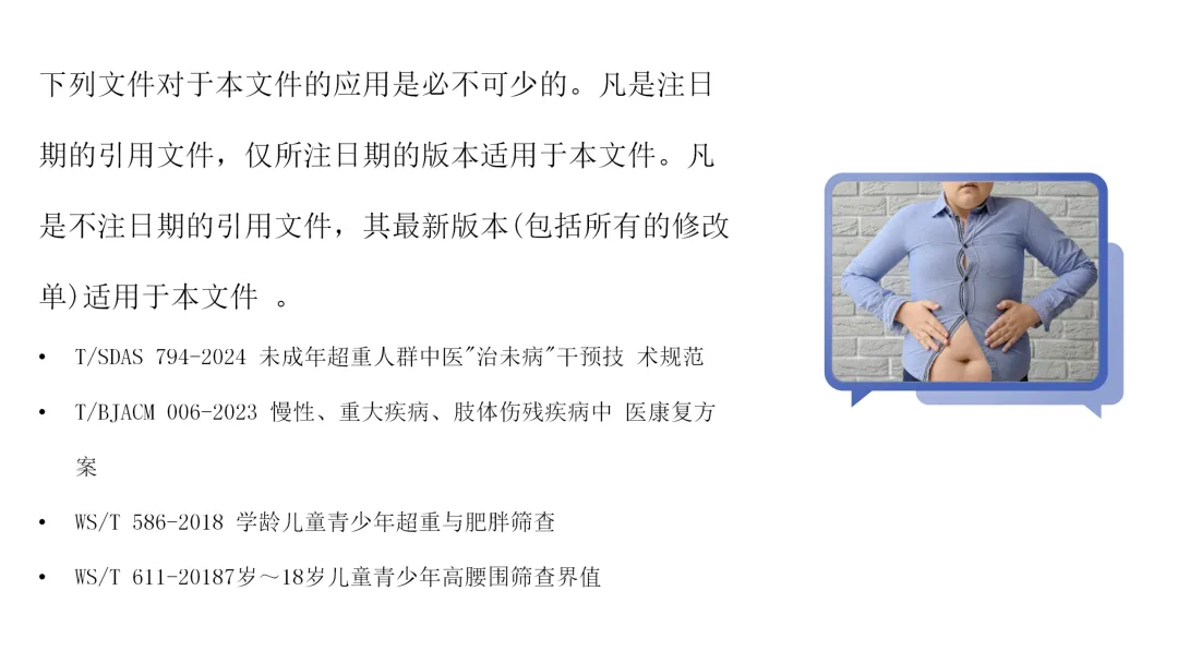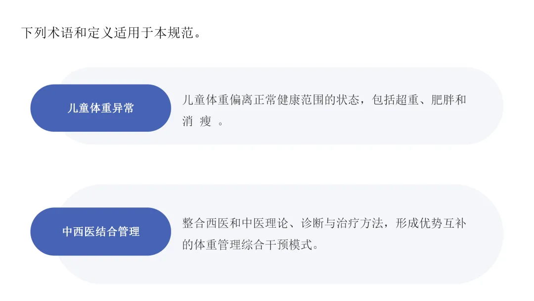 儿童体重异常(超重、肥胖、消瘦)已成为我国儿童健康的重大挑战,单一医学体系难以全面应对。本标准立足中西医协同,融合中医整体调养与西医精准营养代谢理念,构 建科学规范的诊疗标准,通过体质辨识与量化数据(如生长 曲线、体成分分析)实现个体化干预。本标准旨在推动理论创新、学科发展,服务“健康中国2030”战略,为儿科临床、 儿童保健及研究者提供权威、实用的实践指引,共同促进儿童体重管理迈向精准化、规范化新阶段。