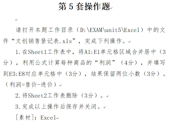 操作题部分一共有5道,其中office软件部分就有3道。操作部分需要将操作步骤记清楚,考前多加练习,便可拿到满分。