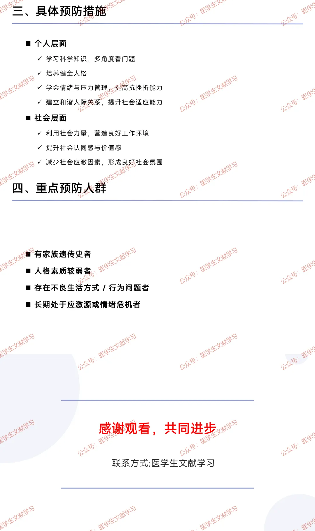 - 社会层面:利用社会力量,营造良好工作环境;提升社会认同感与价值感;减少社会应激因素,形成良好社会氛围。