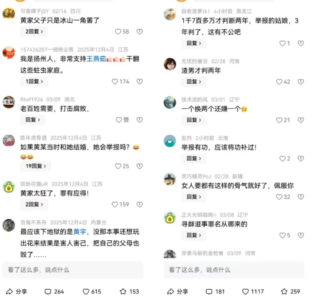 法院认定她参与了POS机套现,赚了约一百万。这事儿发生在举报前,和举报没直接关系,但确实干了。黄道龙贪了三百多万,黄宇套现一千七百多万,时间全和王燕茹交往期重合。她不是胡说,是真看出来了。但看出来,不等于能乱来。她用错了方式,法律就按违法处理。举报没白费,人抓了,钱追了,判了。她也进了号子。