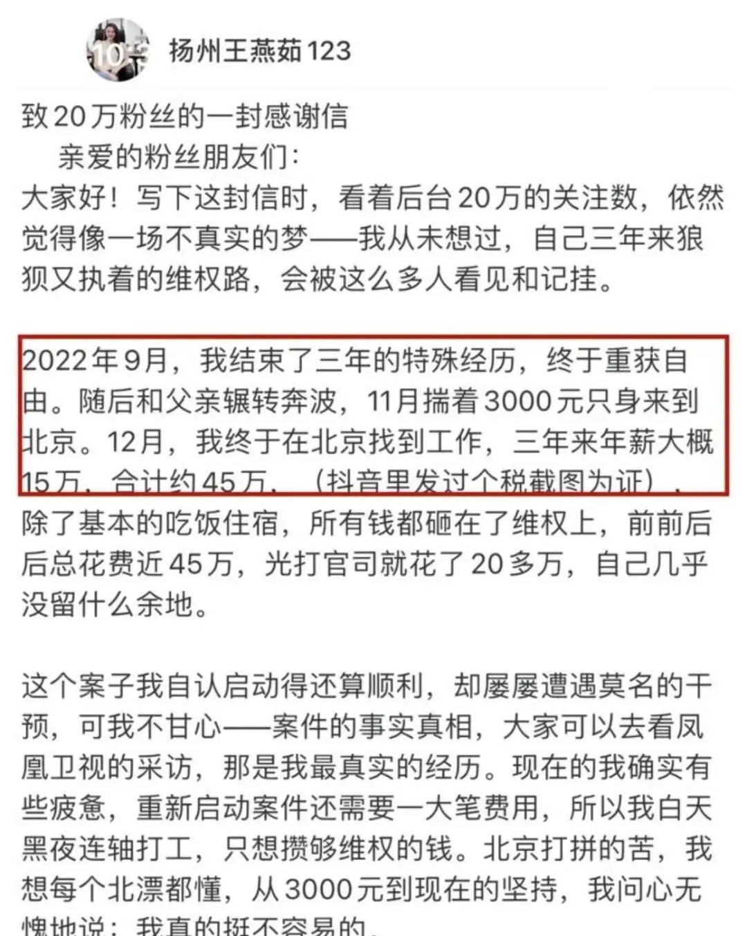 因扳倒了黄道龙父子,从而成为诸多网友关注的焦点。12月3号晚,王燕茹罕有于视频账号上写了一段很长的文案,交代了这三年来的艰辛,另外还透露了很多细节。