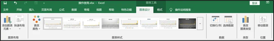 - 设计选项卡:更改图表类型、数据源、改变数据系列产生的方向、更改图表的布局及样式、改变图表存放的位置。【注意】选择数据源时,是绝对引用单元格区域。