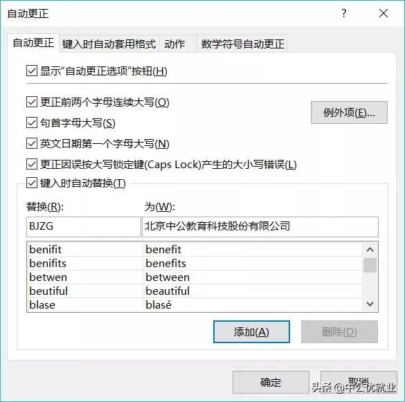 输入“BJZG”再按回车键,自动更正(简略填写)的效果就出现啦,是不是很方便呢?
